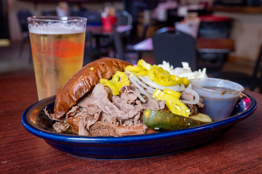 Looking for the best bar food in Northeast Minneapolis? Mayslack’s Bar & Grill has been a Nordeast institution since 1955, and the menu proves it. We’re famous for The Original — our legendary slow-roasted garlic roast beef sandwich piled high with banana peppers and onions, served with au jus. But there’s plenty more where that came from: hand-crafted burgers, crispy wings in a dozen sauces, stone-baked pizzas, hearty entrees, fresh salads, and homemade soup and chili made fresh daily.